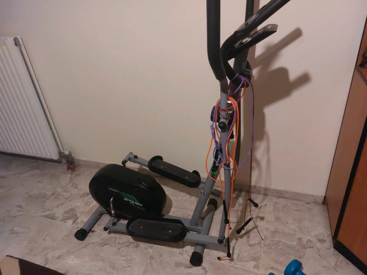 έχει αγοραστεί 225 ευρώ. δίνεται μαζί με τα βαρακια (τα κόκκινα 2kg το ενα και τα μπλε 5kg το ενα τα οποία έχουν αγοραστεί 5 ευρω το ενα),και 2 σχοινακια γυμναστικής όλα ΜΑΖΙ για ολοκληρωμένο πρόγραμμα 125 ευρώ.