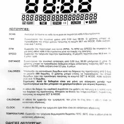 Ενδείξεις στο καντράν: Ώρα, ημερομηνία, ταχύτητα, χρόνος, απόσταση, θερμίδες, καταμέτρηση του λίπους σώματος.