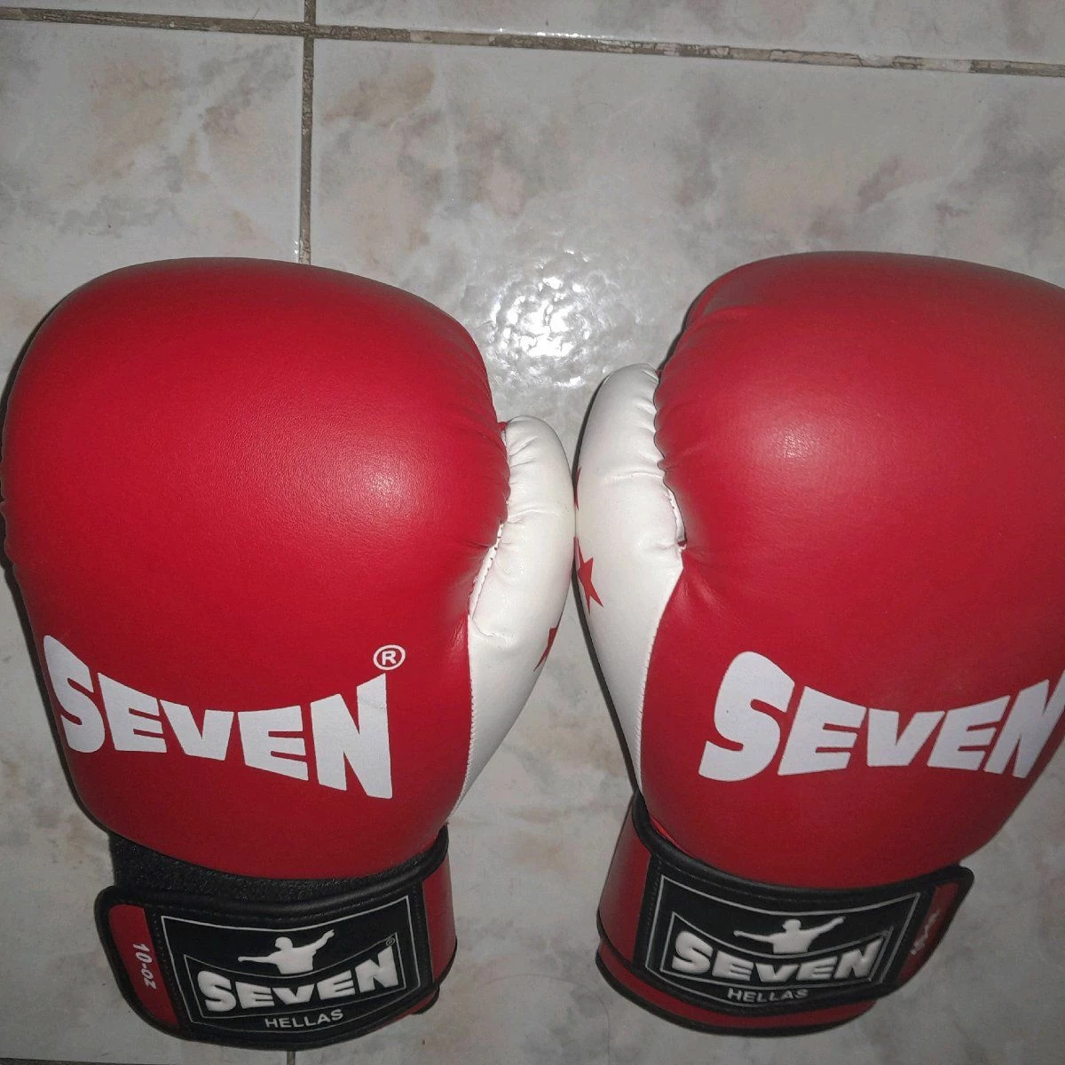 τα γάντια είναι σε άριστη κατάσταση έχουν παίξει μόνο σε προπόνηση φορεμένα 10 φορές μάρκας SEVEN 10-oz και δώρο άσπρα μπανταζ μεταχειρισμένα