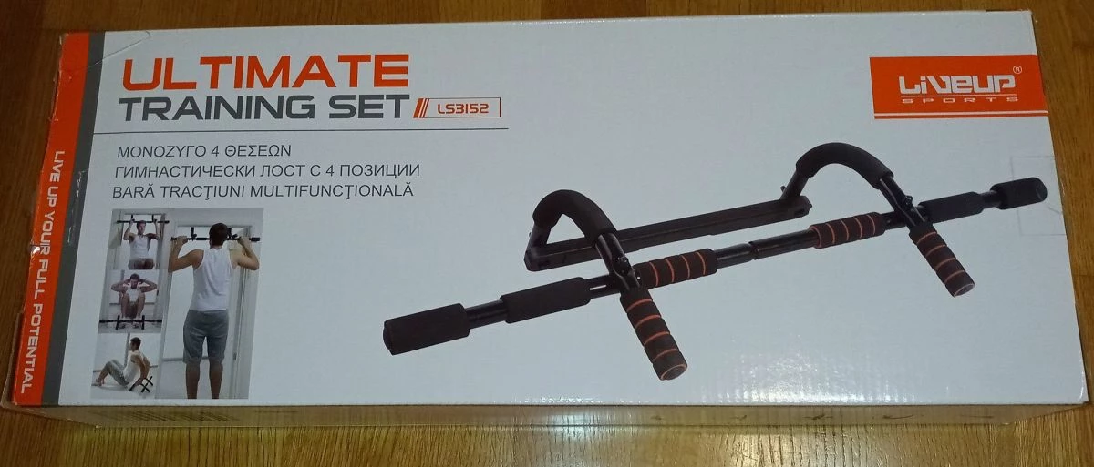 Μονόζυγο, 4 θέσεων, καινούργιο στο κουτί του, διαστάσεων 92 x 16.5 x 43, μπορεί να σηκώσει 110 κιλά, ιδανικό για ενδυνάμωση μυών στομαχιού, ποδιών, πλάτης, πωλείται 10 Ευρώ. .