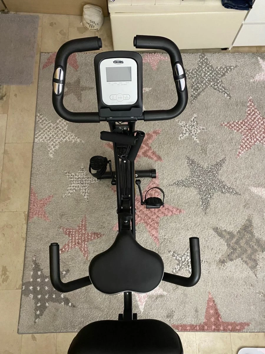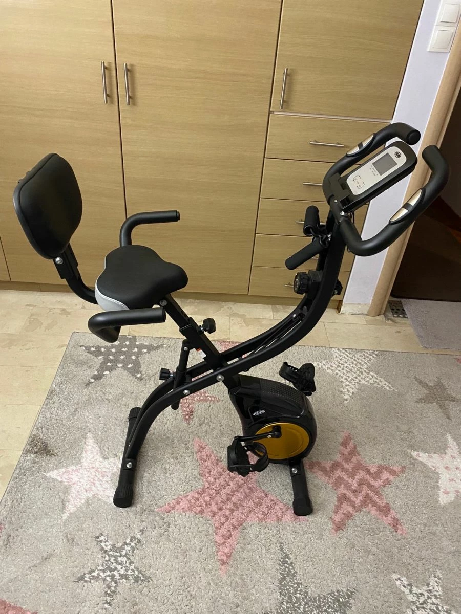 Αχρησιμοποίητο σε κατάσταση καινούριου, πλήρως αναδιπλούμενο ποδήλατο γυμναστικής με 8 προγράμματα. Σύστημα εκγύμνασης με λάστιχα, αναπαυτικό κάθισμα με παχύ μαξιλάρι και στήριξη πλάτης και πολλές ρυθμίσεις ύψους. Ακόμη LCD κονσόλα με ενδείξεις ταχύτητας απόστασης, χρόνου, θερμίδων και καρδιακών παλμών, ροδάκια για εύκολη κύλιση