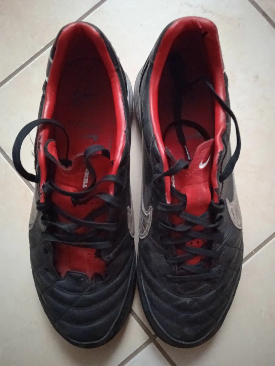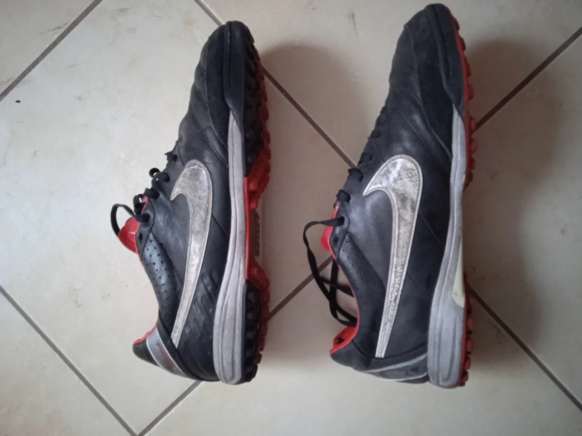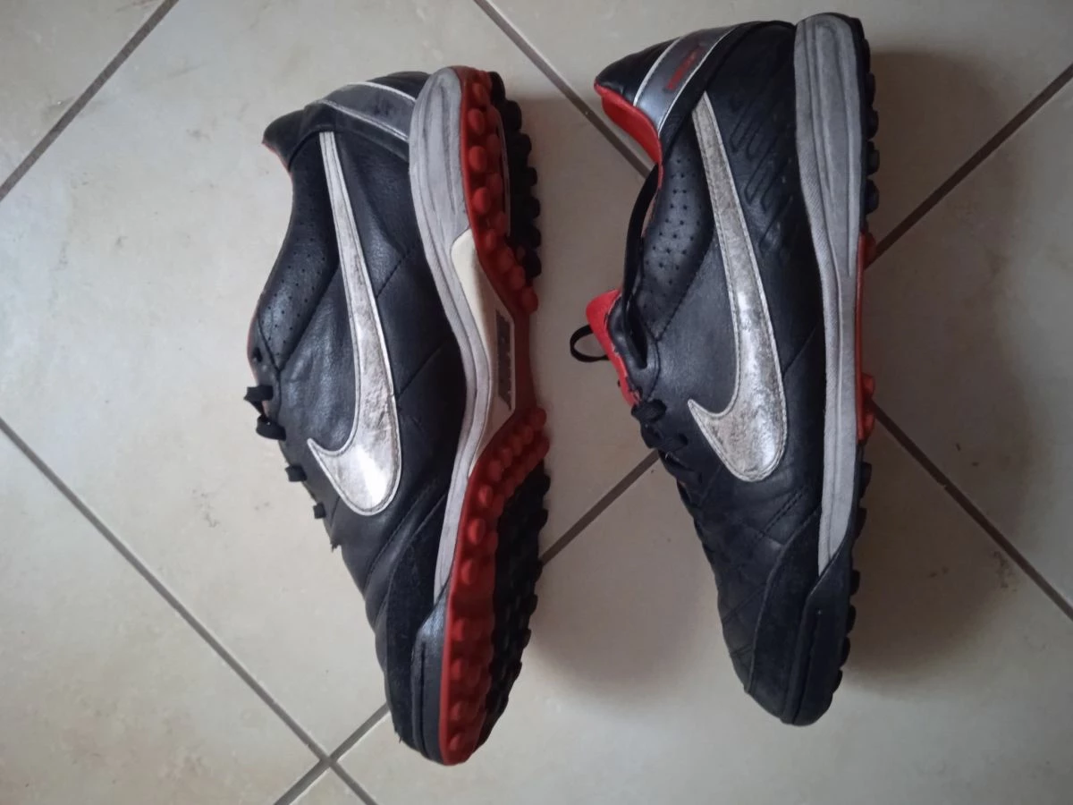 Ποδοσφαιρικά παπούτσια Nike tiempo νούμερο 42,5 σε πολύ καλή κατάσταση.Στο δεξί παπούτσι από τα εφτά ζευγάρια τρύπες για τα κορδόνια μπορούν να χρησιμοποιηθούν τα πέντε.Δερματινα και καλοδιατηρημένα σε καλαπόδια .Ιδανικά για τεχνητό τάπητα.