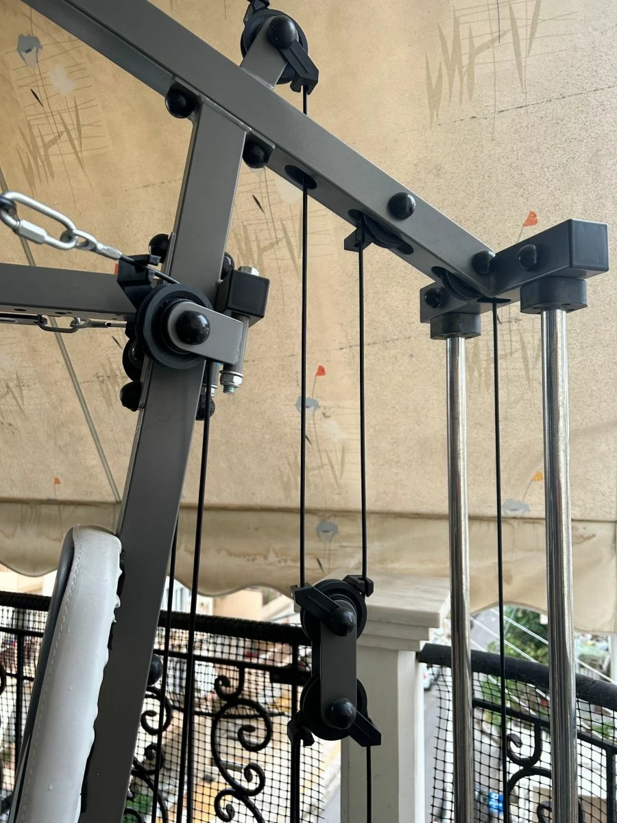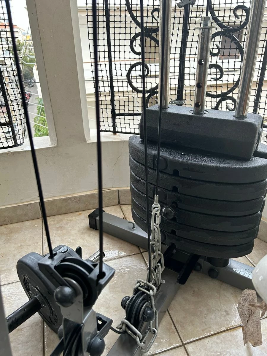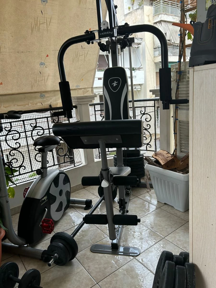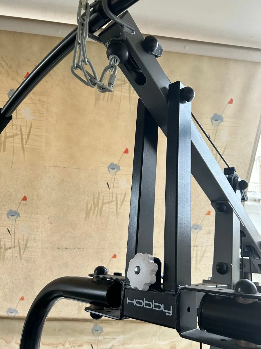 Πολυόργανο ασκήσεων Hobby, σε άριστη κατάσταση. Με ενισχυμένα συρματοπλέγματα και τροχαλίες. Με μικρή και μεγάλη μπάρα για δικέφαλους, τρικέφαλους και αφρώδη μαξιλαράκια προστατευτικά. Περιλαμβάνονται όλες οι μπάρες κιλών, συνολικά 9. Η αποσυναρμολόγηση και η μεταφορά θα γίνει από τον αγοραστή