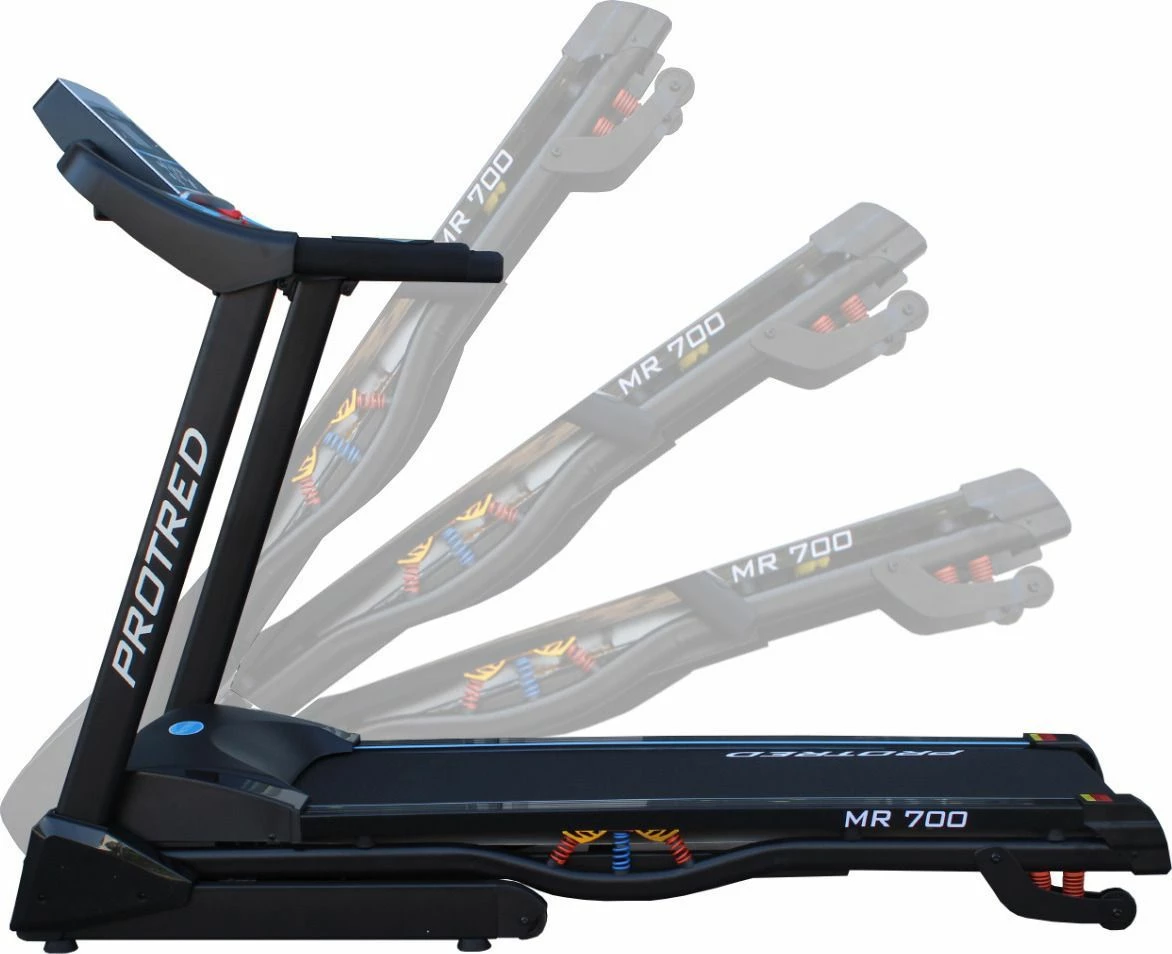 O ProTred MR-700 διαθέτει κινητήρα 2.5 CHP, κλίση ηλεκτρονικά ρυθμιζόμενη σε 15 επίπεδα, αντικραδασμικό σύστημα πολλαπλών ελατηρίων, εντυπωσιακό για την κατηγορία του τάπητα πλάτους 48 cm. Ο διάδρομος ProTred MR-700 αποτελεί ιδανική επιλογή για προπόνηση στο σπίτι!
