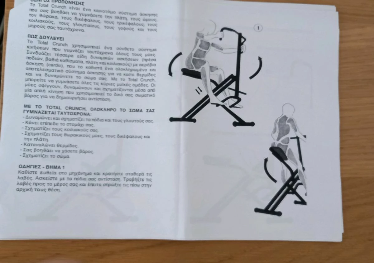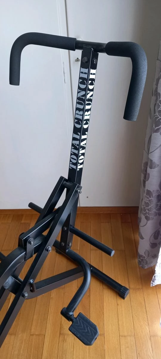 Total crunch όργανο γυμναστικής. Σε εξαιρετική κατάσταση καθώς έχει χρησιμοποιηθεί μόνο τον πρώτο μήνα που αγοραστηκε. (Πατήστε πάνω στις φωτογραφίες για να τις δείτε μεγαλύτερες). Είναι πτυσσόμενο και κλείνει πιάνοντας λίγο χώρο όταν δεν το χρησιμοποιείτε. Γυμνάζει όλο το σώμα (χέρια, πόδια, κοιλιακοί, πλάτη) χρησιμοποιώντας το δικό σας βάρος για αντίσταση. Έχει τρεις διαφορετικές θέσεις άσκησης και δύο επίπεδα δυσκολίας. Έρχεται συναρμολογημενο με το manual του. Δίνετε χέρι με χέρι στα Βριλήσσια καθώς είναι πολύ μεγάλο για να ταχυδρομηθει. Αγοράστηκε 120ευρω. Για περισσότερα αντικείμενα σπιτιού, ρούχα και αξεσουάρ δείτε τις υπόλοιπες αγγελίες μου και ακολουθήστε το προφίλ μου.