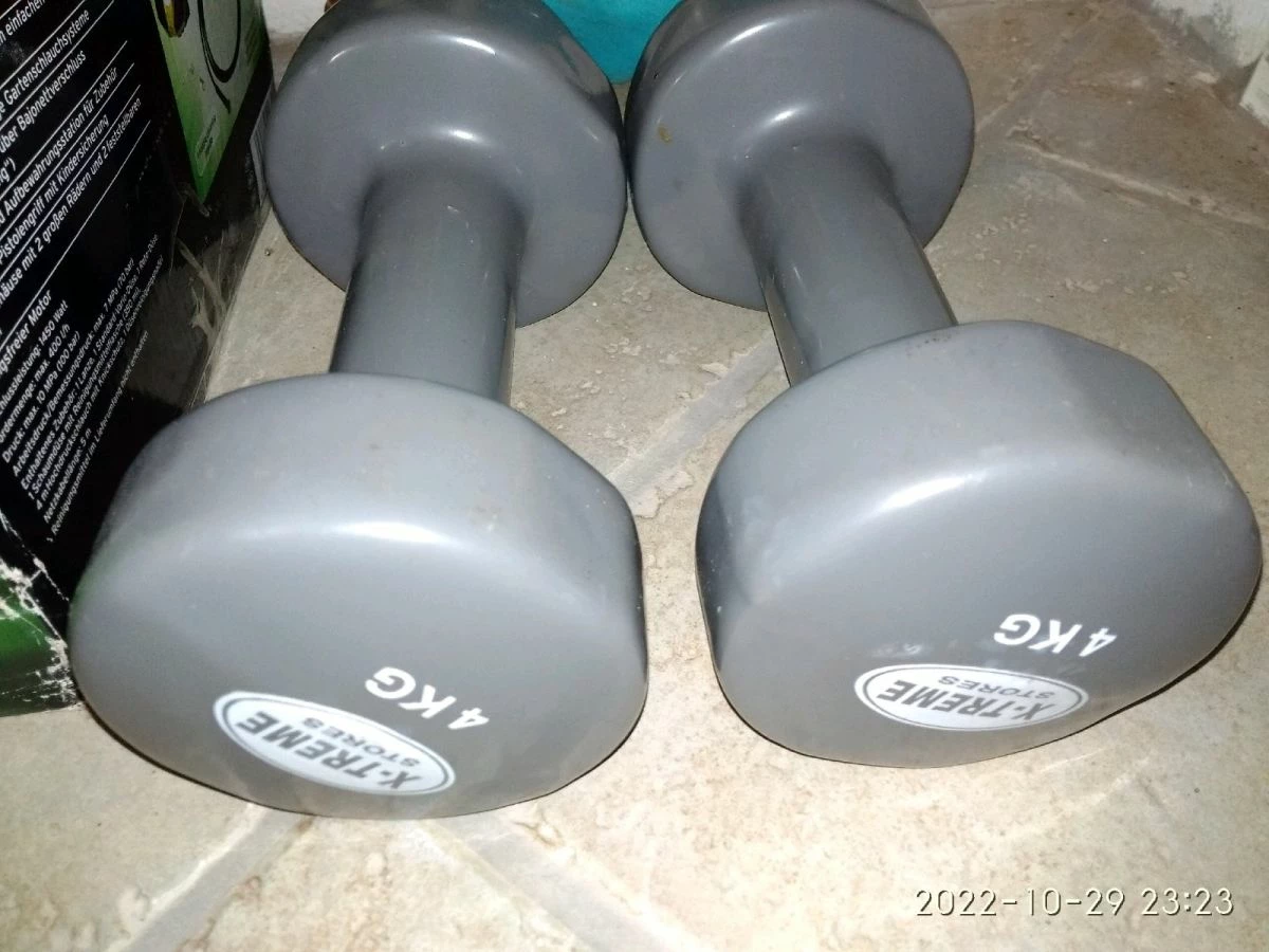 πωλείται η ανταλλάσσεται ένα σετ 4 κιλά βαράκια με αντίστοιχο δίκιλο μεταλλικό τα βαράκια είναι σχεδόν αχρησιμοποίητα.